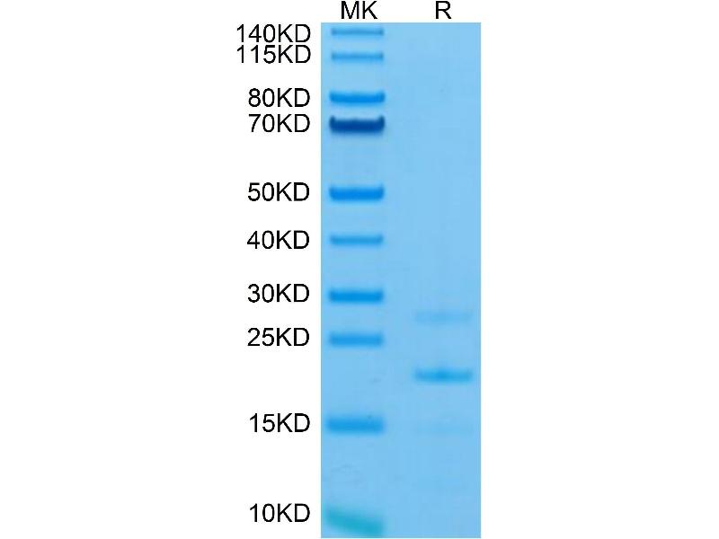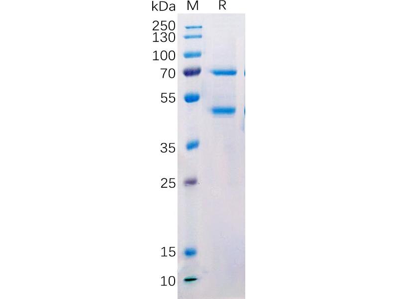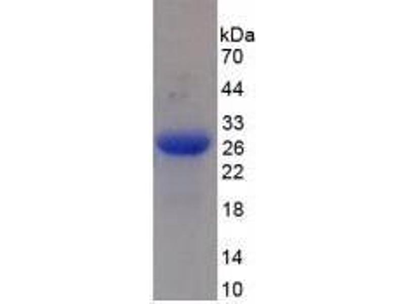 The purity of the protein is greater than 90 % as determined by SDS-PAGE and Coomassie blue staining.