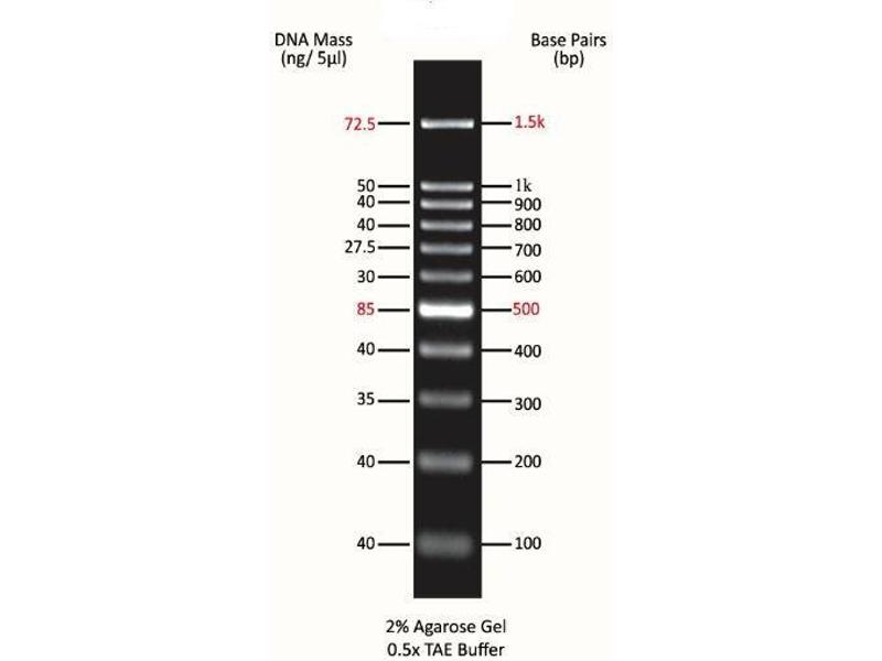 - DNA ladder that range in size from 100 ~ 1,500 bp.