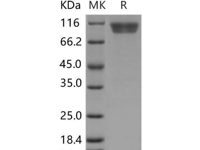 The purity of the protein is greater than 85 % as determined by SDS-PAGE and Coomassie blue staining.