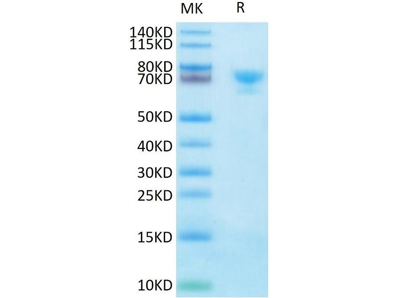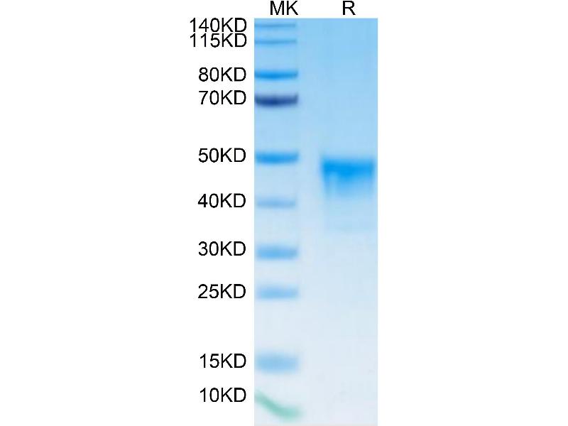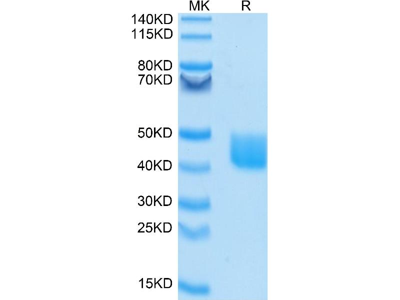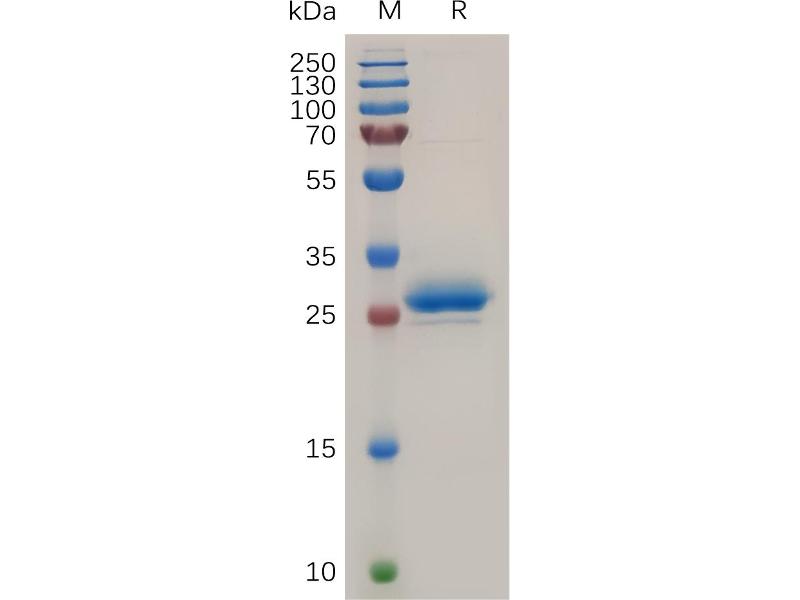 The purity of the protein is greater than 95 % as determined by SDS-PAGE and Coomassie blue staining.