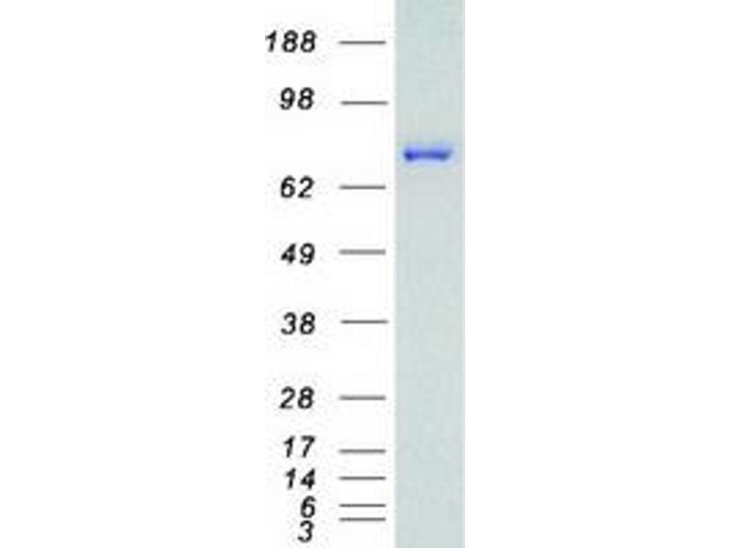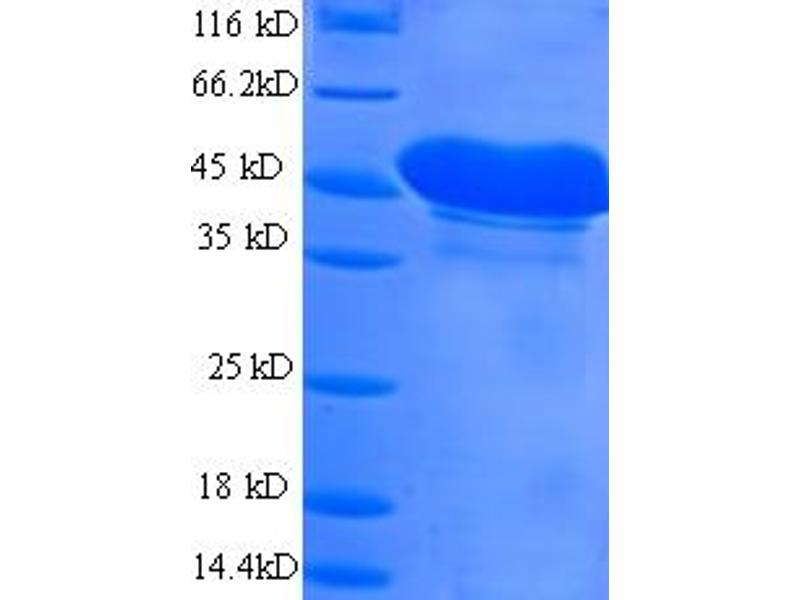 The purity of the protein is greater than 85 % as determined by SDS-PAGE and Coomassie blue staining.