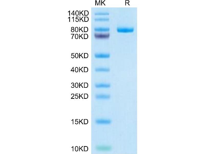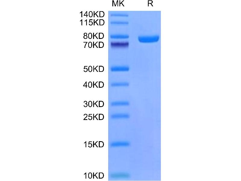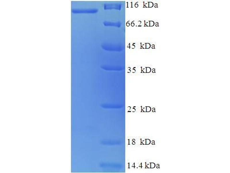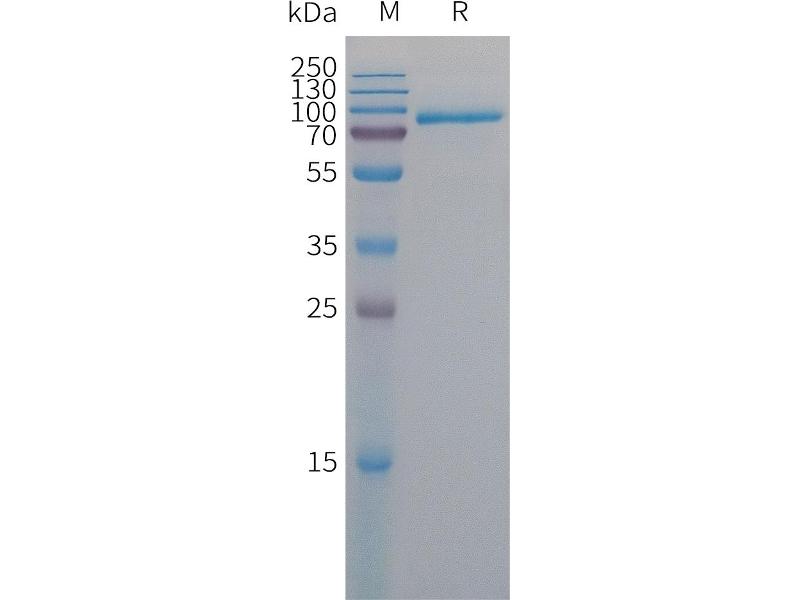 The purity of the protein is greater than 85 % as determined by SDS-PAGE and Coomassie blue staining.