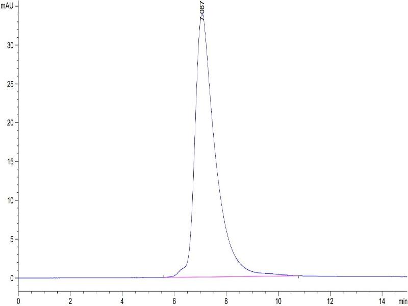 The purity of the protein is greater than 95 % as determined by SDS-PAGE and Coomassie blue staining.