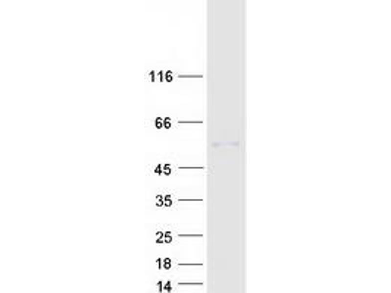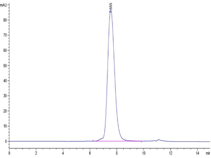 The purity of the protein is greater than 95 % as determined by SDS-PAGE and Coomassie blue staining.