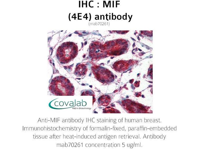 MIF Reactivité: Humain WB, ELISA, IHC (p) Hôte: Souris Monoclonal (4E4) unconjugated