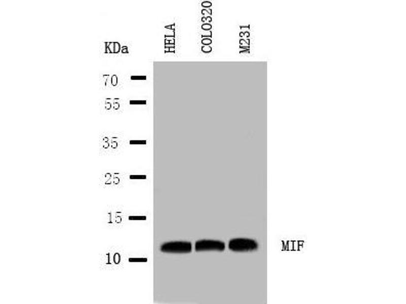 MIF Reactivité: Humain, Souris, Rat, Singe, Boeuf (Vache), Mouton, Porc WB, IHC, IF Hôte: Lapin Polyclonal unconjugated