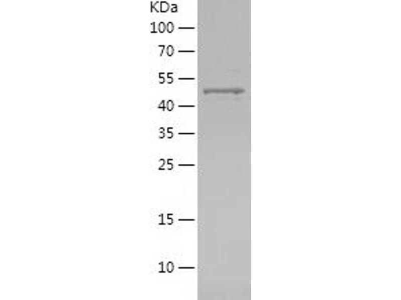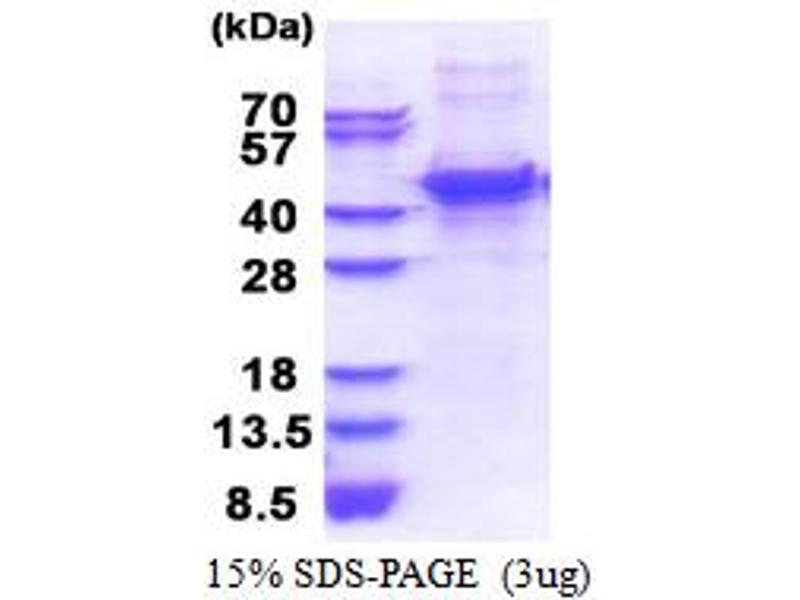 The purity of the protein is greater than 95 % as determined by SDS-PAGE and Coomassie blue staining.