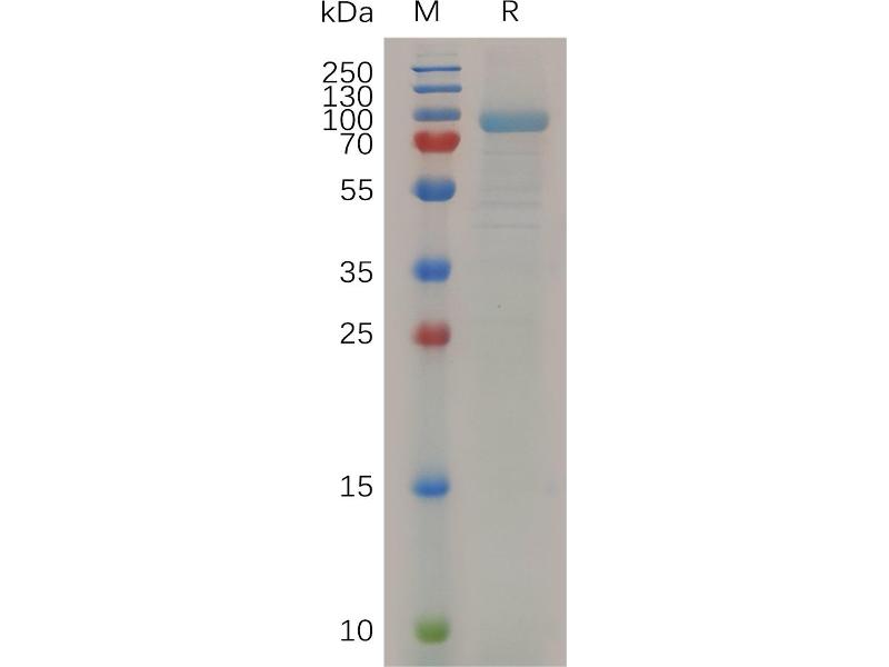 The purity of the protein is greater than 85 % as determined by SDS-PAGE and Coomassie blue staining.