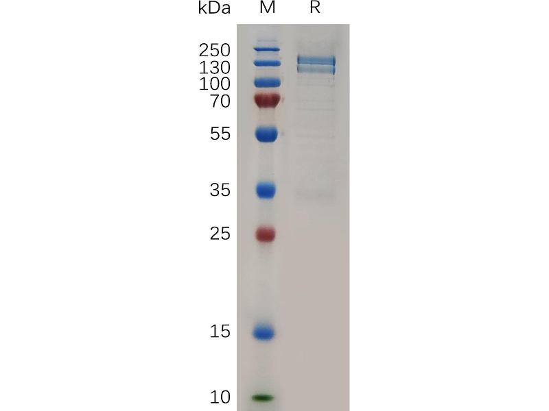 The purity of the protein is greater than 95 % as determined by SDS-PAGE and Coomassie blue staining.