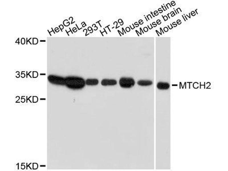 : "Rapid degradation of mutant SLC25A46 by the ubiquitin-proteasome system results in MFN1/2-mediated hyperfusion of mitochondria." dans: Molecular biology of the cell, Vol. 28, Issue 5, pp. 600-612, (2017) (PubMed).Pseudonymes pour MTCH2 Anticorps