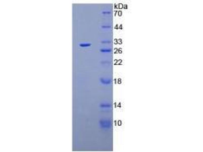 The purity of the protein is greater than 85 % as determined by SDS-PAGE and Coomassie blue staining.