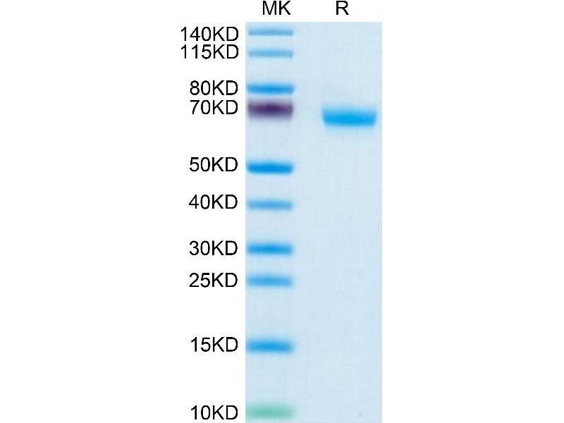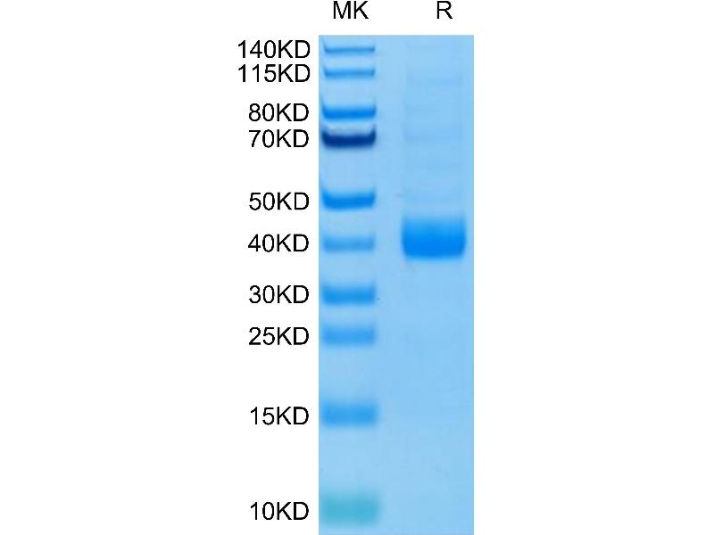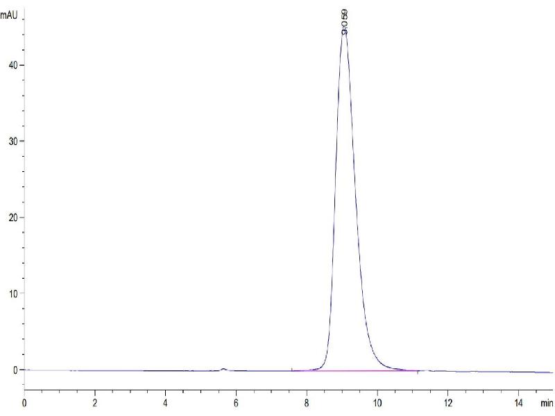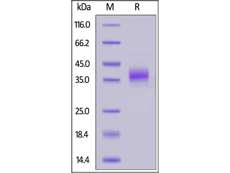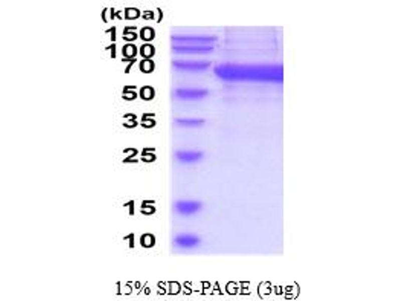 The purity of the protein is greater than 95 % as determined by SDS-PAGE and Coomassie blue staining.