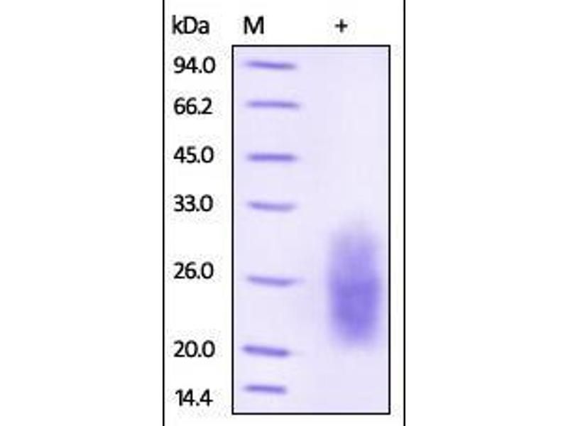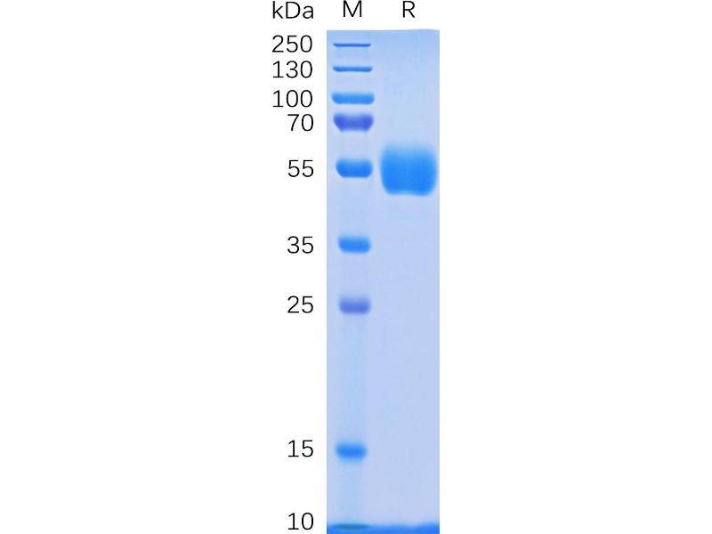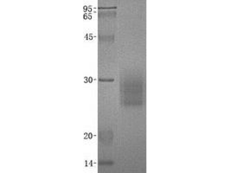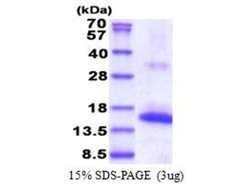 The purity of the protein is greater than 95 % as determined by SDS-PAGE and Coomassie blue staining.