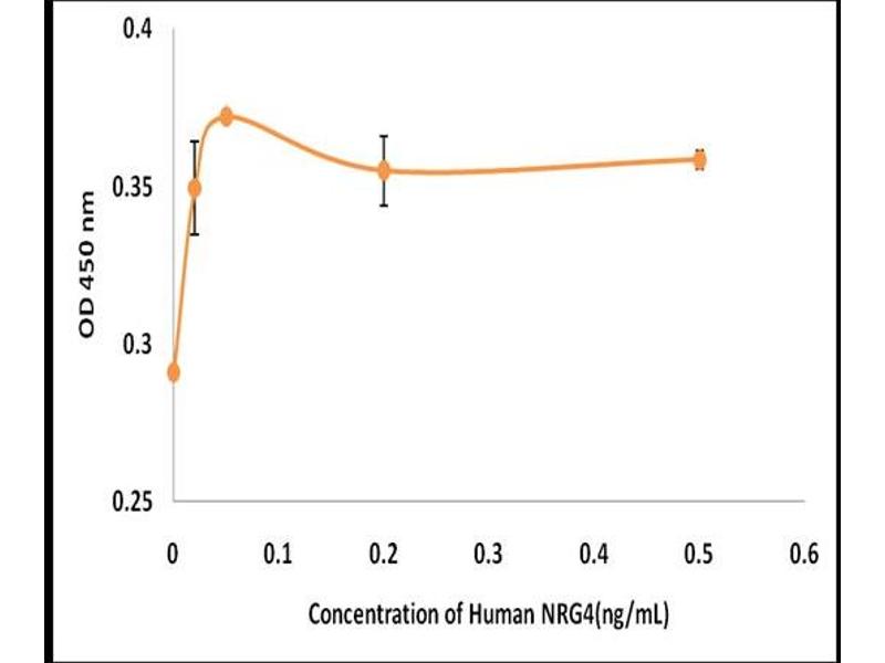 The neuregulins, including NRG4, activate type-1 growth factor receptors (see EGFR\; MIM 131550) to initiating cell-to-cell signaling through tyrosine phosphorylation (Harari et al., 1999 [PubMed 10348342]).[supplied by OMIM, Mar 2008].