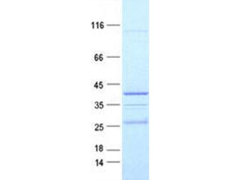 The purity of the protein is greater than 95 % as determined by SDS-PAGE and Coomassie blue staining.