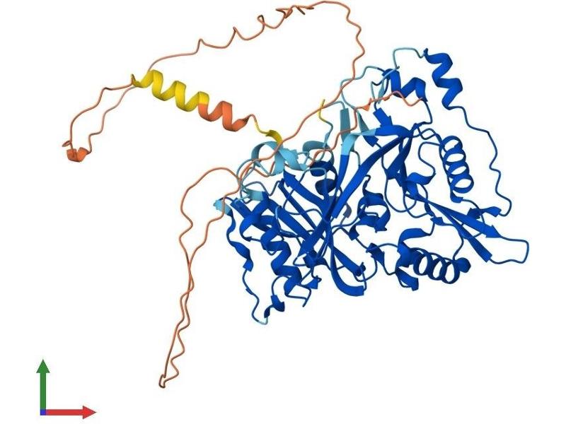 N-myristoyltransferase (NMT) catalyzes the reaction of N-terminal myristoylation of many signaling proteins. It transfers myristic acid from myristoyl coenzyme A to the amino group of a protein's N-terminal glycine residue. Biochemical evidence indicates the presence of several distinct NMTs, varying in apparent molecular weight and /or subcellular distribution. The predicted 498-amino acid of human NMT2 protein shares 77% and 96% sequence identity with human NMT1 and mouse Nmt2 comprise two distinct families of N-myristoyltransferases. [provided by RefSeq, Jul 2008].