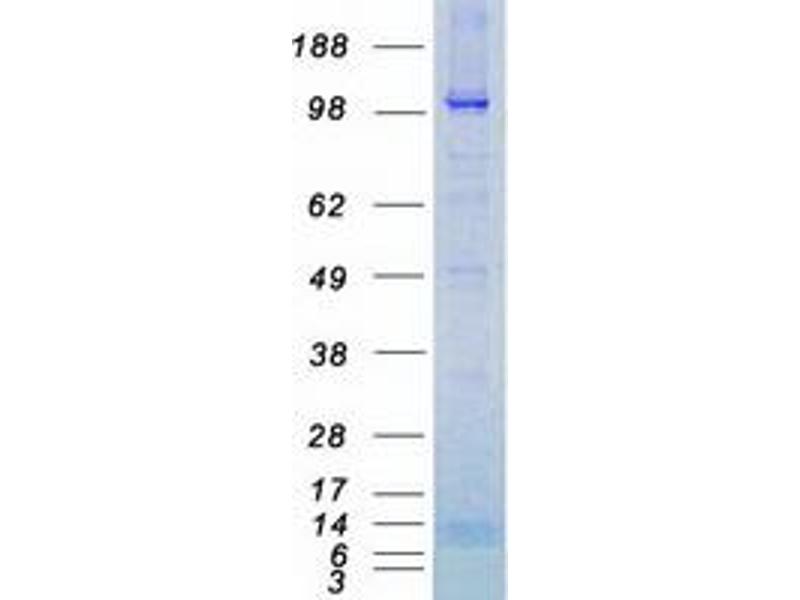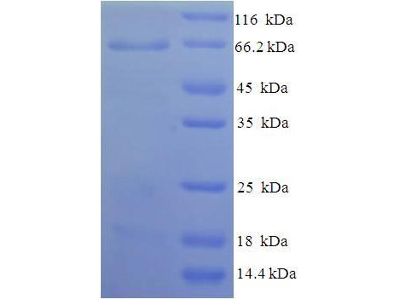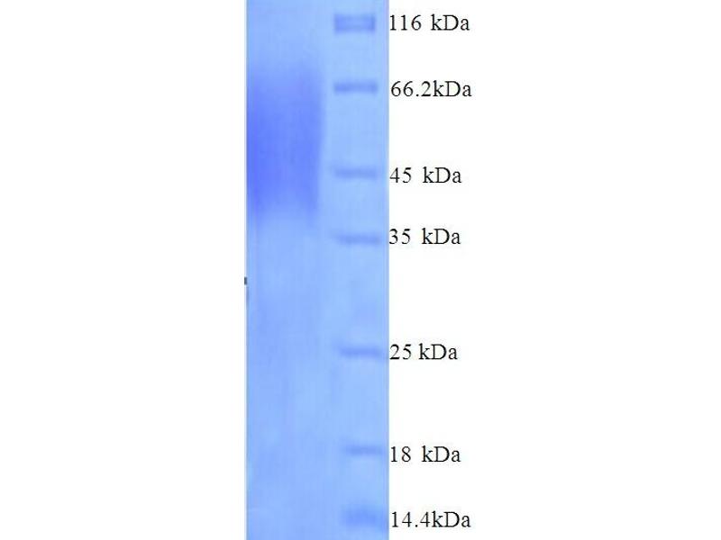 The purity of the protein is greater than 95 % as determined by SDS-PAGE and Coomassie blue staining.