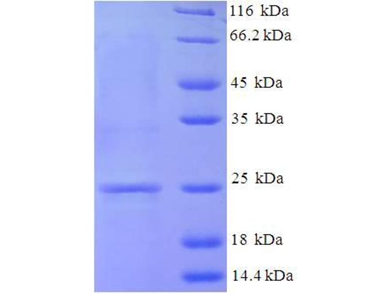 The purity of the protein is greater than 85 % as determined by SDS-PAGE and Coomassie blue staining.