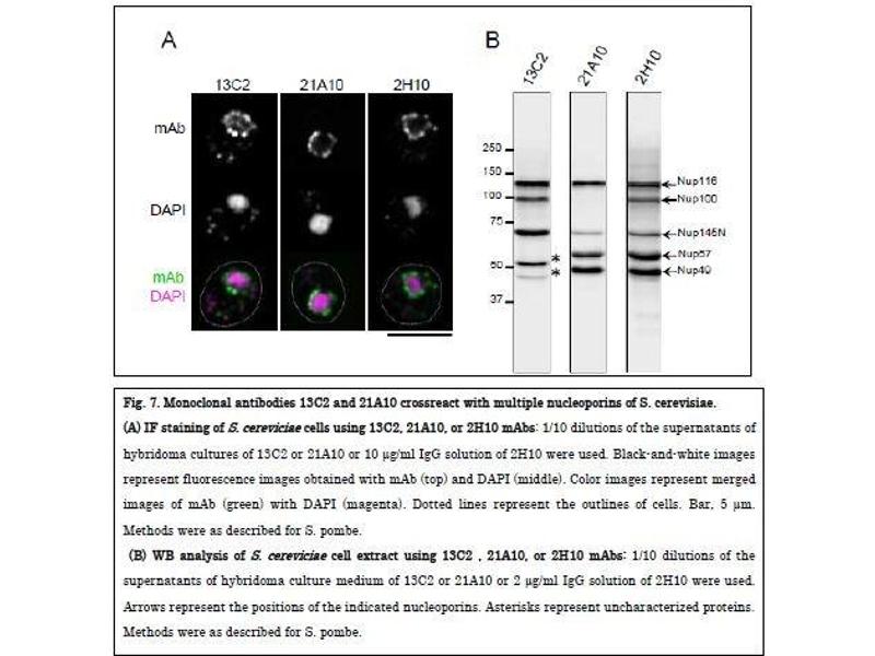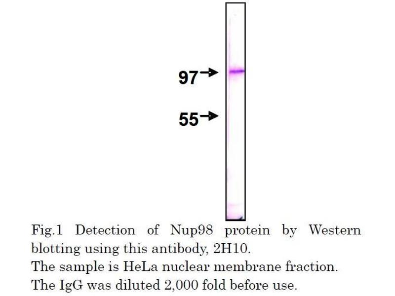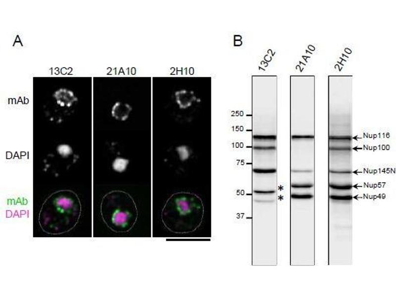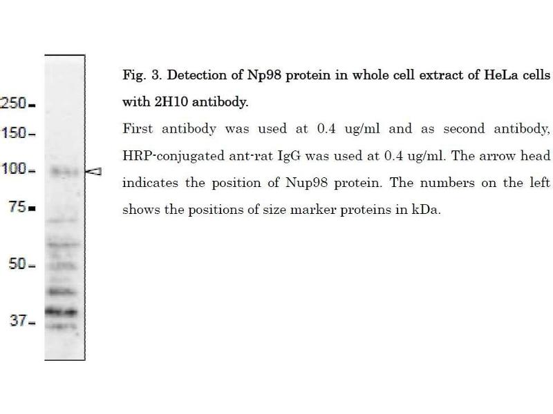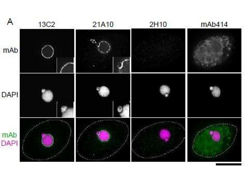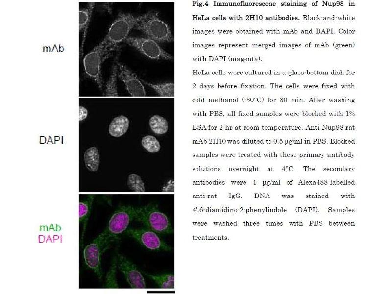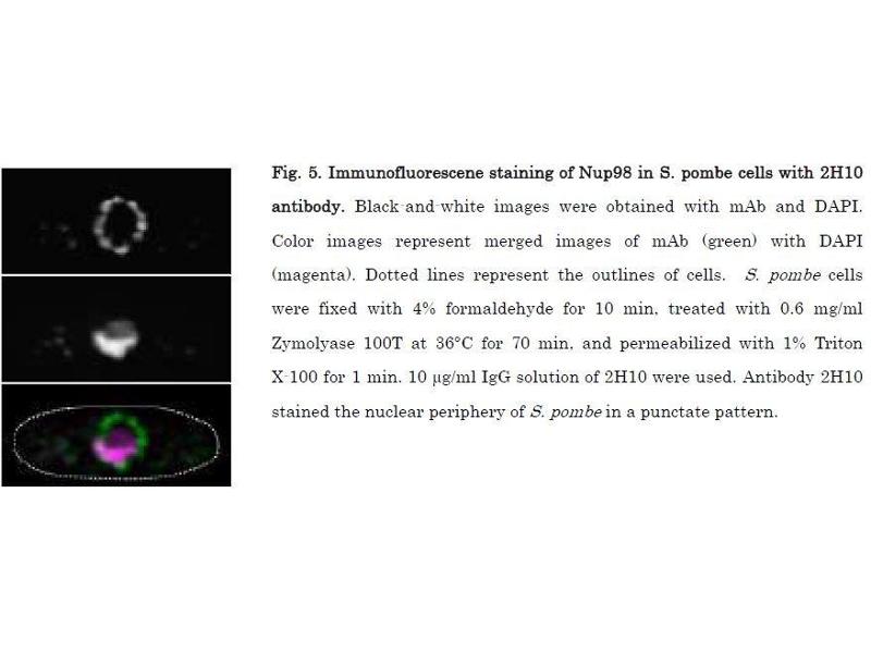 : "Specific monoclonal antibody against the nuclear pore complex protein, nup98." dans: Hybridoma (2005), Vol. 24, Issue 5, pp. 244-7, (2005) (PubMed).
