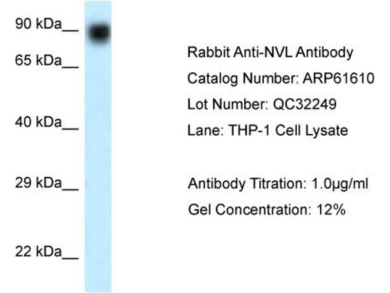 : "The AAA-ATPase NVL2 is a telomerase component essential for holoenzyme assembly." dans: Biochemical and biophysical research communications, Vol. 417, Issue 3, pp. 1086-92, (2012) (PubMed).Pseudonymes pour NVL Anticorps