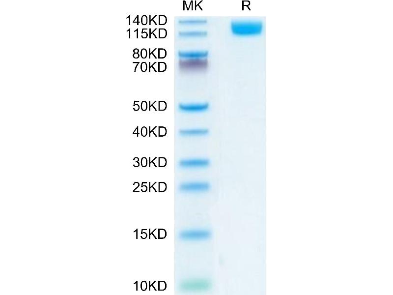 The purity of the protein is greater than 85 % as determined by SDS-PAGE and Coomassie blue staining.