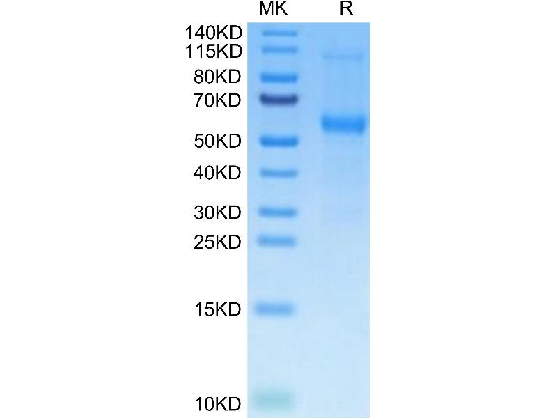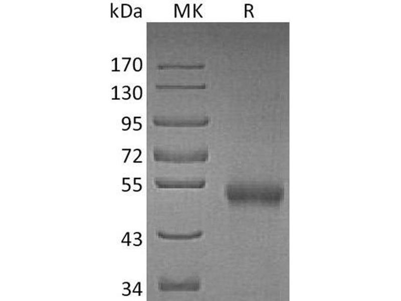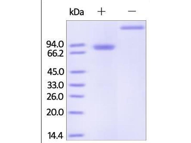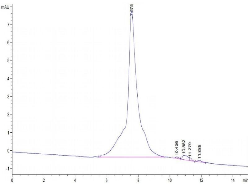 The purity of the protein is greater than 85 % as determined by SDS-PAGE and Coomassie blue staining.