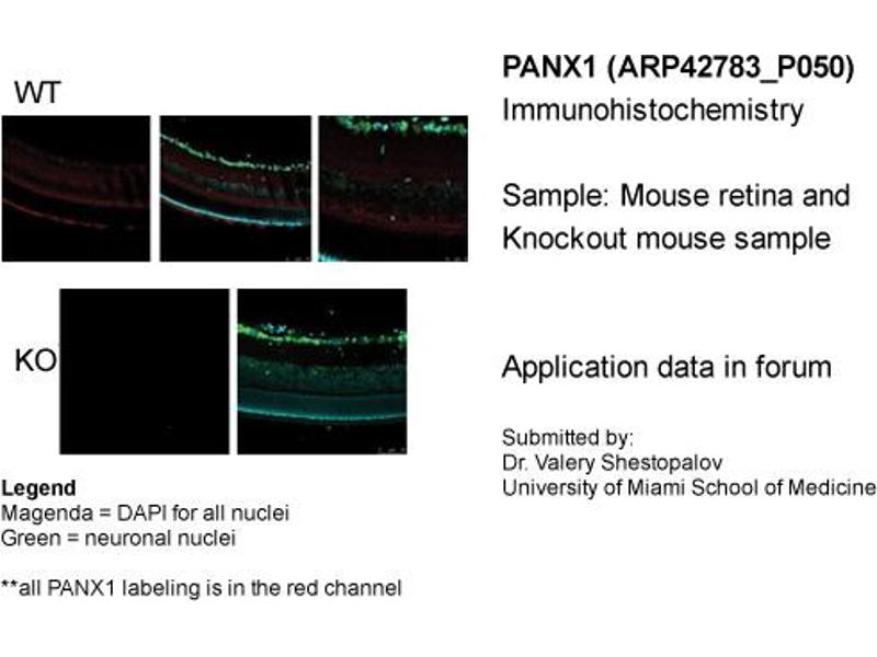 Choisissez l’un des 56 anticorps PANX1 de notre liste de produits basés sur 44 images de validation.