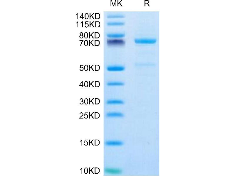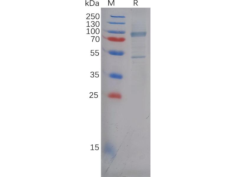 The purity of the protein is greater than 80 % as determined by SDS-PAGE and Coomassie blue staining.