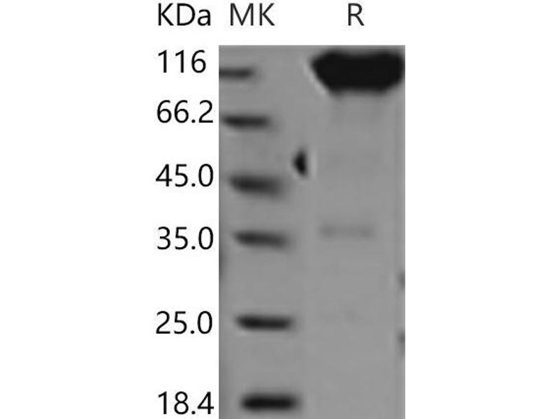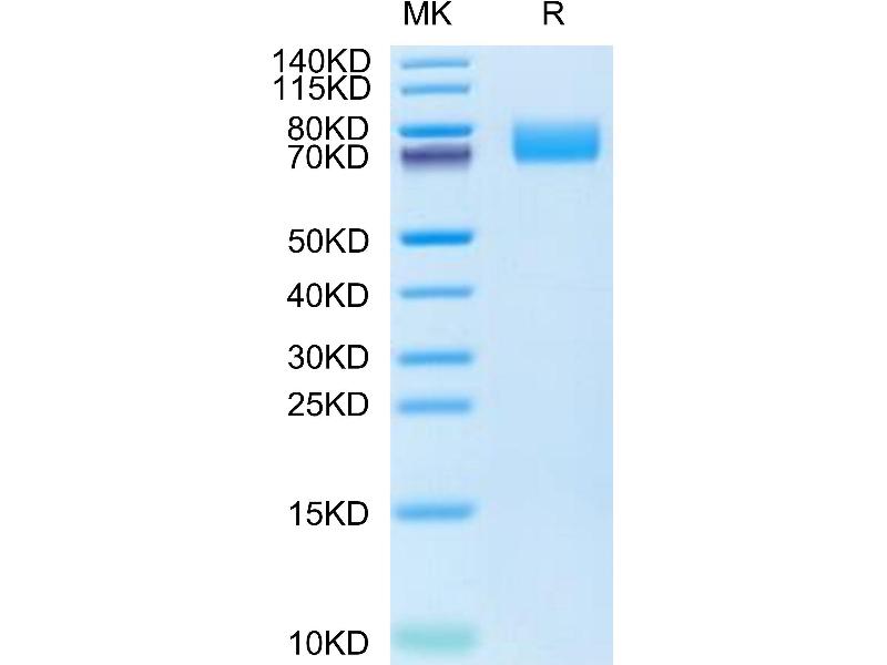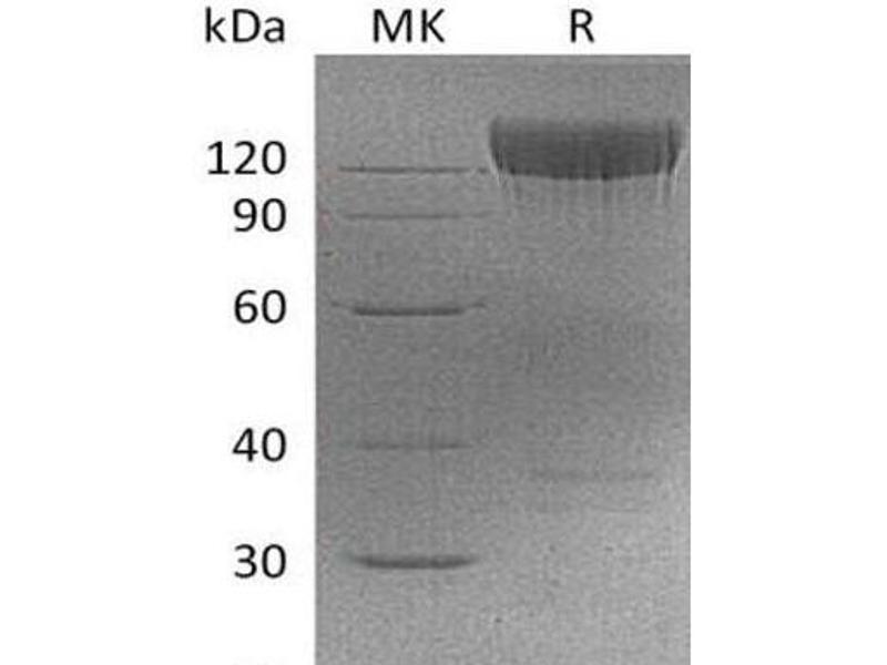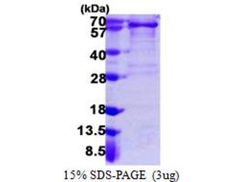 The purity of the protein is greater than 85 % as determined by SDS-PAGE and Coomassie blue staining.