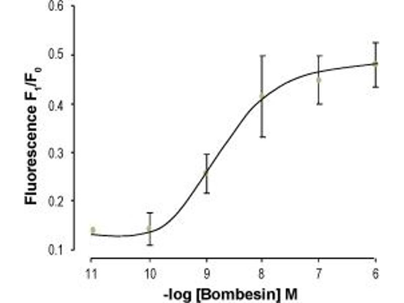 Bombesin is an active neuropeptide originally isolated from amphibian skin but also found in the central and peripheral nervous systems of amphibians1. Later it was established that mammals and birds express two family groups of endogenous Bombesin-like factors, the gastrin-releasing peptides and neuromedin B2. The biological activities of bombesin are mediated through a family of three specific G-protein coupled receptors (GPCRs): BB1 which is also known as a neuromedin B receptor, BB2 also known as a gastrin-releasing peptide receptor and BB3 which is a low affinity binder for the Bombesin-like factors3,4.Bombesin and Bombesin-like factors show a broad range of biological activities such as regulation of smooth muscle contraction, stimulation of neuropeptide and hormone secretion, modulation of neural activity, growth regulation, and mediate anorexic effects in the hypothalamus5.