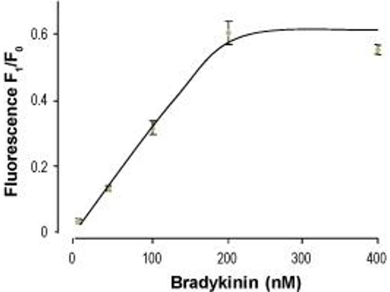 Kallidin I,Bradykinin is a potent effector peptide that binds the bradykinin receptors B2. Bradykinin reduces blood pressure and increases vascular permeability by inducing smooth muscle relaxation and blood vessel dilation1.Bradykinin is one the most potent known factors inducing pain substances that acts on afferent sensory neurons Bradykinin stimulates the synthesis of prostaglandins2 and is a major contributor to the innate inflammatory response3. Injection of Bradykinin into the skin produces all the inflammation basic signs4. Bradykinin has been implicated also in various shock syndromes5. Application of Bradykinin to the central nervous system appears to initiate events leading to neural tissue damage as well as long lasting disturbances affecting blood-brain barrier function6.