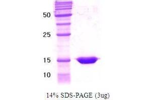 The retinoid X receptor (RXR) is a pleiotropic nuclear receptor transcription factor that interacts with a variety of nuclear receptor dimeric partner. RXR binds cognate response elements as a homodimer in the presence of its ligand, 9-cis retinoic acid, or as a heterodimer with other members of the nuclear hormone receptor superfamily including retinoic acid receptors (RAR), thyroid hormone receptors (TR), vitamin D receptors and peroxisome proliferators-activated receptors (PPAR). The RXR family includes three difference isoforms, RXR alpha, beta, gamma. Human RXR alpha gene is localized on 9q34.9 and encodes two major isoforms (RXR alpha1, RXR alpha2). The DNA binding domain of RXR (111-228aa) was over expressed in E. coli and purified by using conventional column chromatography techniques. Alternative Names: RXR-alpha protein, Nuclear receptor subfamily 2 group B member 1 protein, RXRA protein, RXRalpha1 protein, NR2B1 protein, Retinoid X receptor alpha protein, MGC102720 protein, Retinoic acid receptor RXR alpha protein, Retinoid x receptor protein, RXRA1, RXR alpha1 protein, FLJ16020 protein, Retinoic acid receptor RXR-alpha protein, FLJ16733 protein