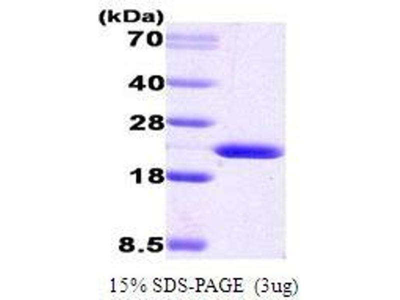 Purified recombinant Human Cyclophilin B protein Expression System: E.coli Bioactivity: Specific activity is > 170 nM/min/µg, and is defined as the amount of enzyme that cleaves 1uM of suc-AAFP-pNA per minute at 1 °C in Tris-Hcl pH 8.0 using chymotrypsin. Molecular weight on SDS-PAGE will appear higher.