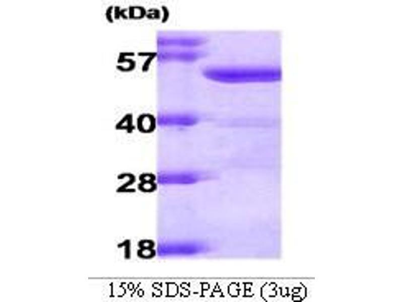 Purified recombinant Human ALDH2 protein Expression System: E.coli Bioactivity: Specific activity is < 0.2 units/mL, and was obtained by measuring the increase of NADP in absorbance at 340 nm resulting from the reduction of NAD. One unit will oxidize 1.0 uM of acetaldehyde to acetic acid per minute at pH 8.0 at 25 °C in the presence of beta-NAD, potassium and thiols. Molecular weight on SDS-PAGE will appear higher.
