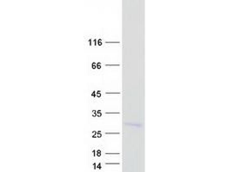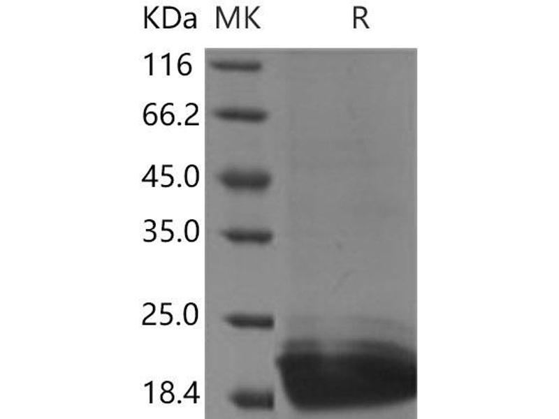 The purity of the protein is greater than 95 % as determined by SDS-PAGE and Coomassie blue staining.