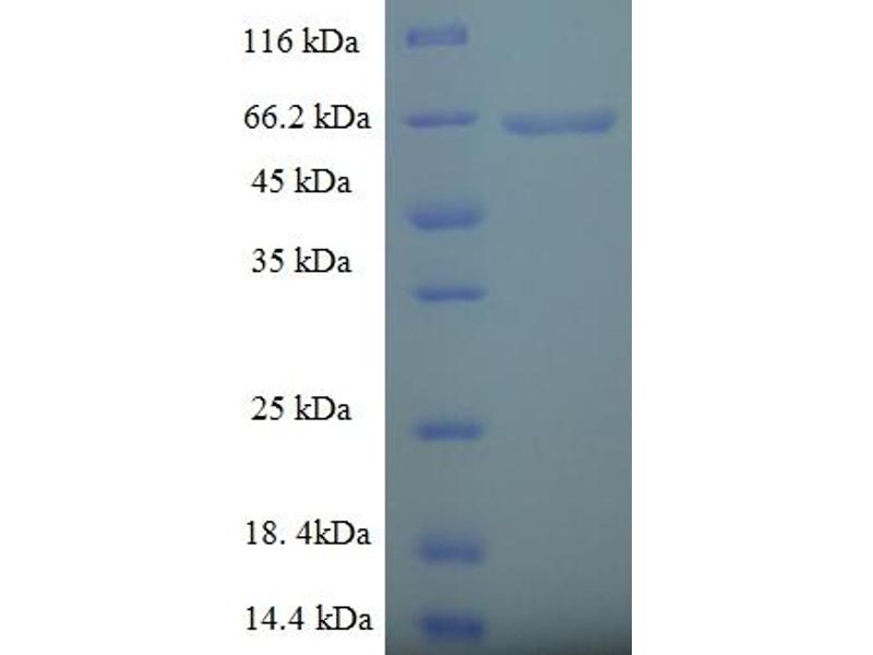 The purity of the protein is greater than 95 % as determined by SDS-PAGE and Coomassie blue staining.