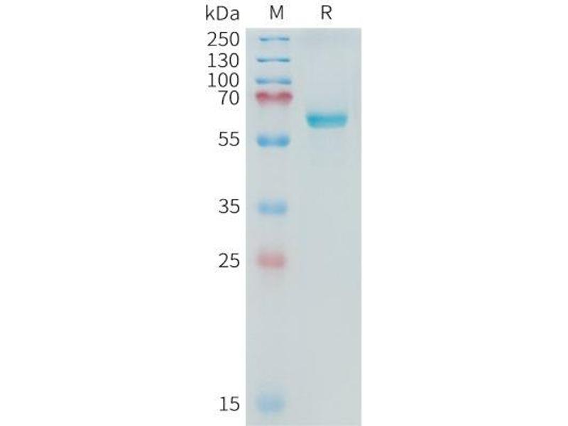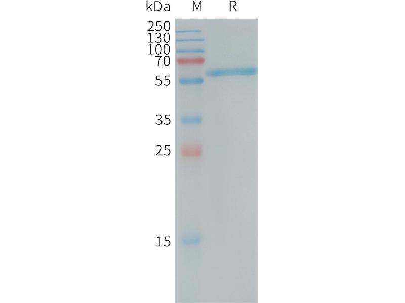 The purity of the protein is greater than 85 % as determined by SDS-PAGE and Coomassie blue staining.