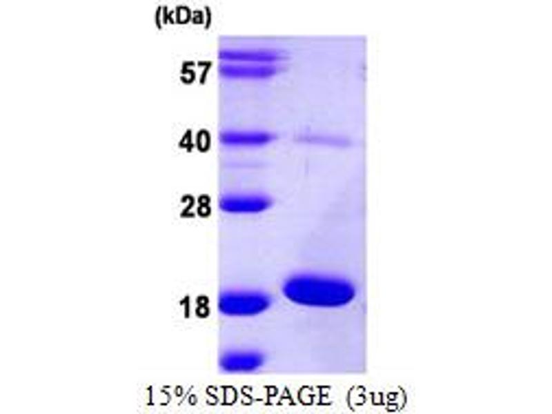 The purity of the protein is greater than 85 % as determined by SDS-PAGE and Coomassie blue staining.