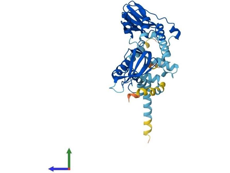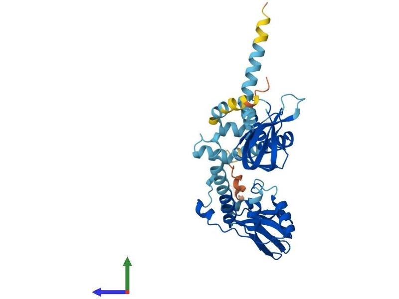 cAMP is a signaling molecule important for a variety of cellular functions. cAMP exerts its effects by activating the cAMP-dependent protein kinase, which transduces the signal through phosphorylation of different target proteins. The inactive kinase holoenzyme is a tetramer composed of two regulatory and two catalytic subunits. cAMP causes the dissociation of the inactive holoenzyme into a dimer of regulatory subunits bound to four cAMP and two free monomeric catalytic subunits. Four different regulatory subunits and three catalytic subunits have been identified in humans. This gene encodes one of the regulatory subunits. This protein was found to be a tissue-specific extinguisher that down-regulates the expression of seven liver genes in hepatoma x fibroblast hybrids. Mutations in this gene cause Carney complex (CNC). This gene can fuse to the RET protooncogene by gene rearrangement and form the thyroid tumor-specific chimeric oncogene known as PTC2. A nonconventional nuclear localization sequence (NLS) has been found for this protein which suggests a role in DNA replication via the protein serving as a nuclear transport protein for the second subunit of the Replication Factor C (RFC40). Several alternatively spliced transcript variants encoding two different isoforms have been observed. [provided by RefSeq, Jan 2013].