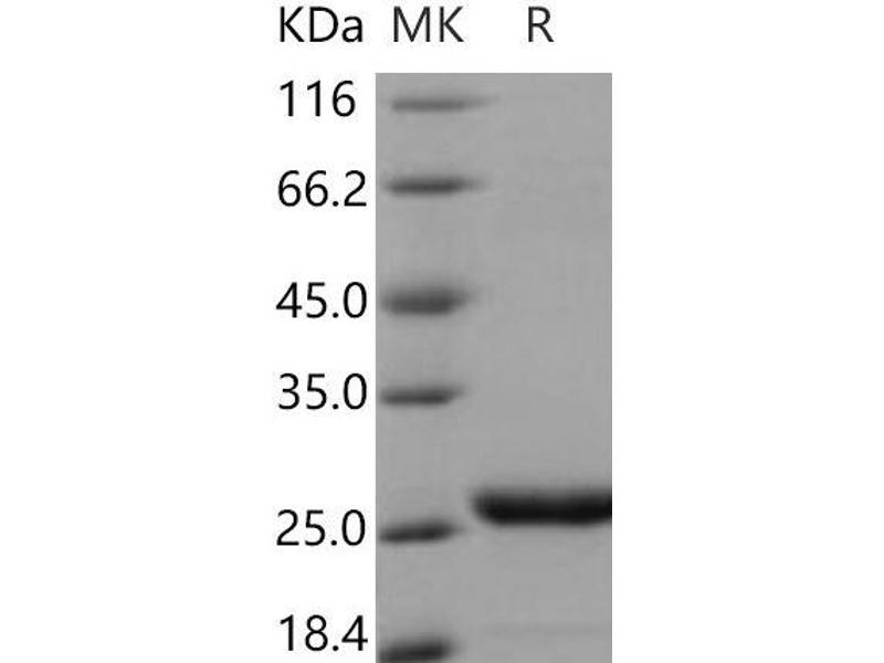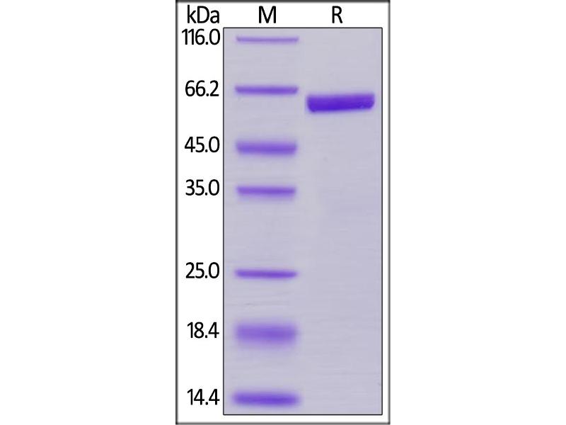 The purity of the protein is greater than 95 % as determined by SDS-PAGE and Coomassie blue staining.