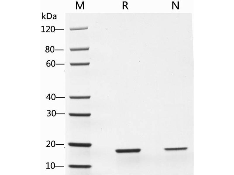 Tumor Necrosis Factor-alpha (TNF-a) is a homotrimer with a subunit molecular mass of 17.3 kDa. Tumor Necrosis Factor-alpha(TNF-a) plays a major role in growth regulation, differentiation, inflammation, viral replication, tumorigenesis, and autoimmune diseases, and in viral, bacterial, fungal, and parasitic infections. Besides inducing hemorrhagic necrosis of tumors, TNF has been found to be involved in tumorigenesis, tumor metastasis, viral replication, septic shock, fever, inflammation, and autoimmune diseases including Crohn's disease, and rheumatoid arthritis as well as graft-versus-host disease.Recombinant Human Tumor Necrosis Factor-alpha (TNF-a) produced in E.coli is a single non-glycosylated polypeptide chain containing 157 amino acids. A fully biologically active molecule, rhTNF-a has a molecular mass of 17.3 kDa analyzed by reducing SDS-PAGE.