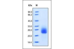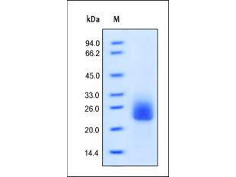 - This protein carries no "tag". The protein has a calculated MW of 18.9 kDa. The protein migrates as 25-30 kDa under reducing (R) condition (SDS-PAGE).