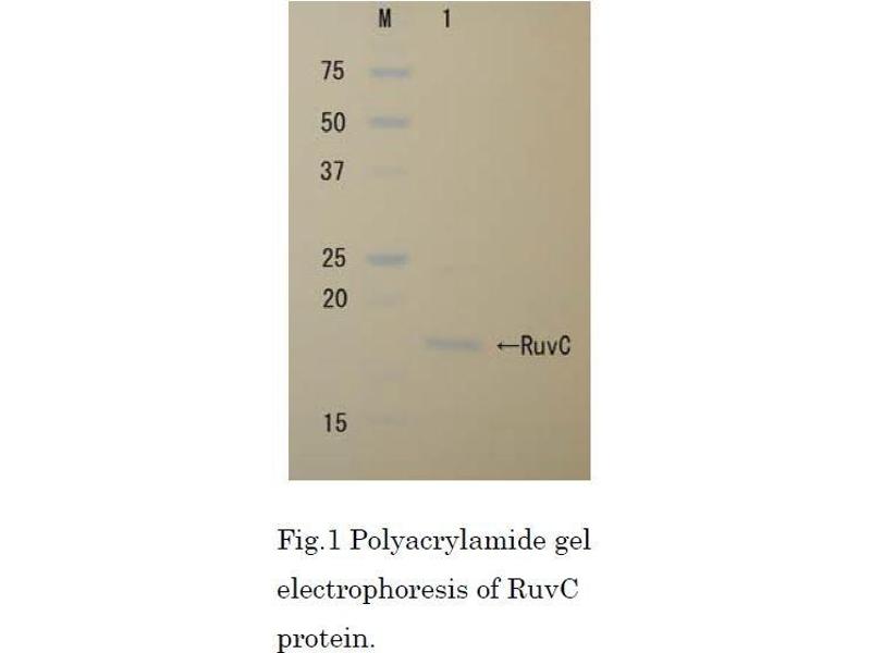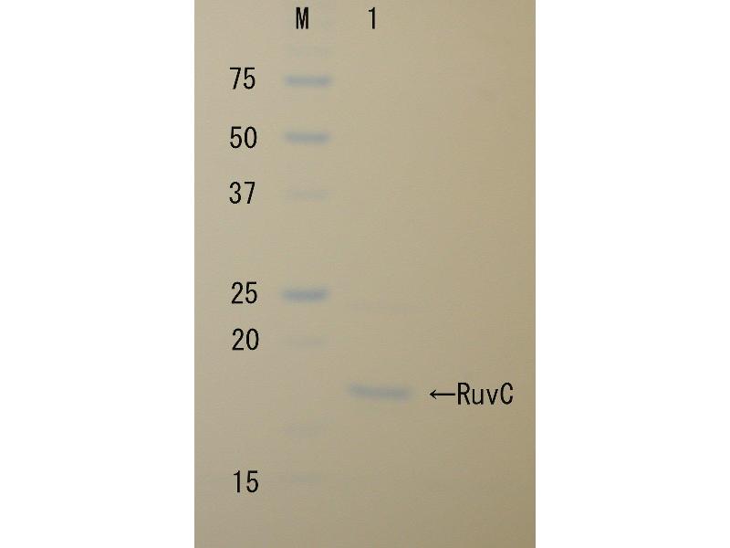 - Full-length recombinant protein expressed in E.coli and highly purified by combined chromatography. RuvC protein purity is over 90 % by SDS-PAGE (CBB staining)