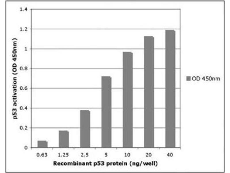 Recombinant p53 is suitable for TransAM®, protein-protein and DNA protein assays. 1 ng is sufficient for a gelshift assay. The standard curve for TransAM p53 was generated using the range of 40 - 0.625 ng of protein. NOTE: The presence of Poly [d(I-C)] in buffers may affect protein functionality and should be avoided.