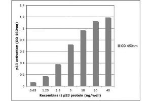 - Recombinant p53 is suitable for TransAM®, protein-protein and DNA protein assays. 1 ng is sufficient for a gelshift assay. The standard curve for TransAM p53 was generated using the range of 40 - 0.625 ng of protein. NOTE: The presence of Poly [d(I-C)] in buffers may affect protein functionality and should be avoided.
