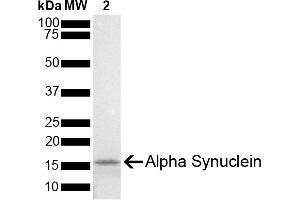 - Alpha-Synuclein (SNCA) is expressed predominantly in the brain, where it is concentrated in presynaptic nerve terminals (1). Alpha-synuclein is highly expressed in the mitochondria of the olfactory bulb, hippocampus, striatum and thalamus (2). Functionally, it has been shown to significantly interact with tubulin (3), and may serve as a potential microtubule-associated protein. It has also been found to be essential for normal development of the cognitive functions, inactivation may lead to impaired spatial learning and working memory (4). SNCA fibrillar aggregates represent the major non A-beta component of Alzheimers disease amyloid plaque, and a major component of Lewy body inclusions, and Parkinson's disease. Parkinson's disease (PD) is a common neurodegenerative disorder characterized by the progressive accumulation in selected neurons of protein inclusions containing alpha-synuclein and ubiquitin (5, 6).