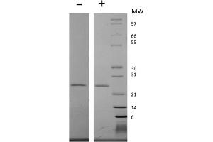 Application Note: Epstein-Barr Virus Induced Gene 3 Recombinant Protein has been tested by SDS-PAGE and is suitable as a control for polyclonal or monoclonal anti-Epstein-Barr Virus Induced Gene 3 in immunological assays. The product is lyophilized from a sterile filtered aqueous solution of 0.1 % TFA and 0.5 % mannitol.