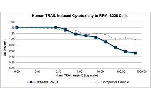 - The activity is determined by the ability to induce apoptotic cell death in TRAIL-sensitive RPMI-8226 cells and is typically 10-15 ng/mL.