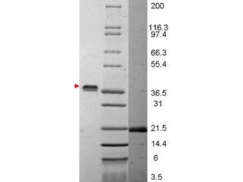 Application Note: VEGF-165 Recombinant Protein has been tested by SDS-PAGE and is suitable as a control for polyclonal or monoclonal anti-VEGF-165 in immunological assays.