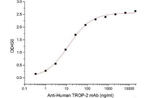 - Immobilized Human TROP-2-His(Cat#C07M) at 2μg/ml (100 μl/well) can bind Anti-Human TROP-2 mAb. The ED50 of Anti-Human TROP-2 mAb is 13.03 ng/ml.